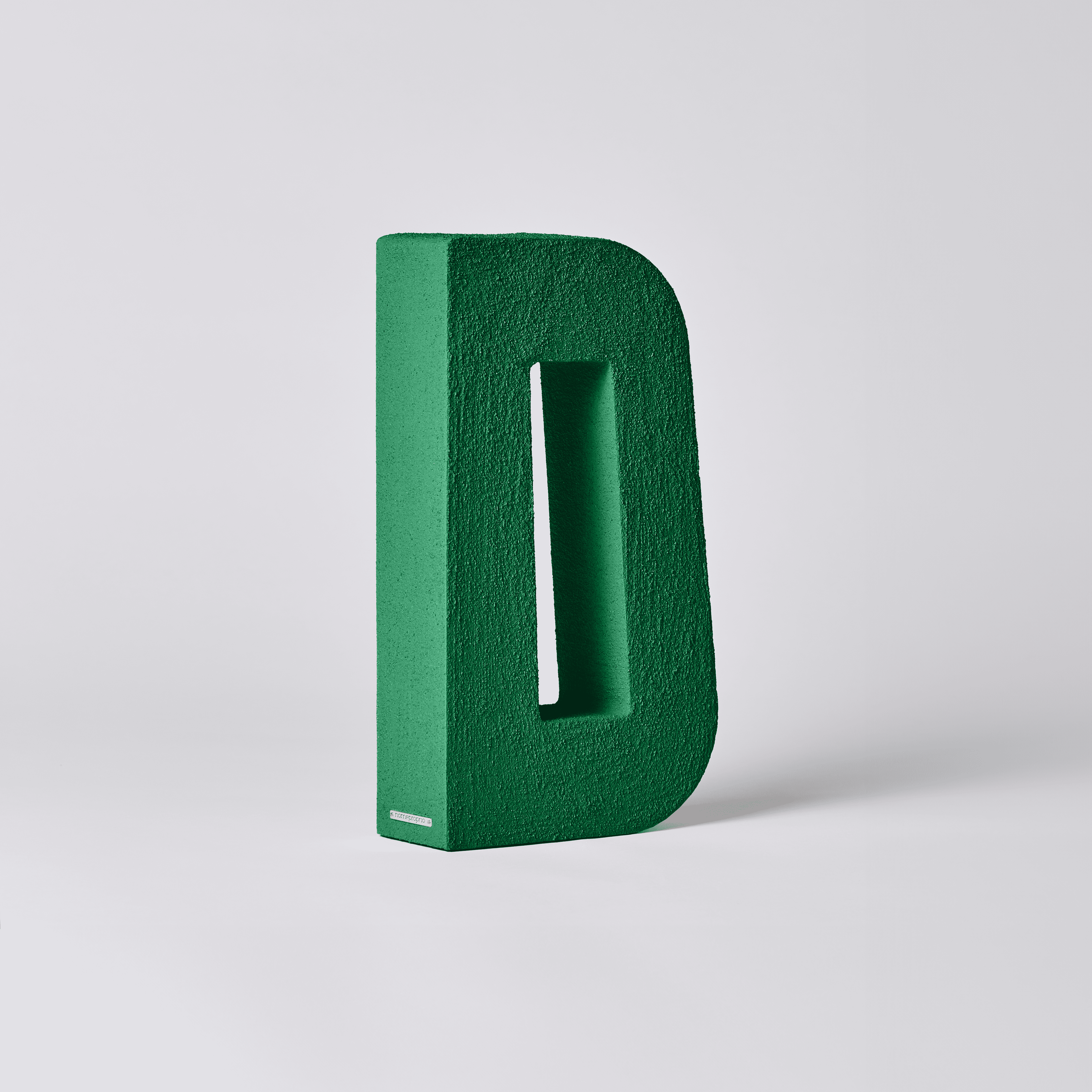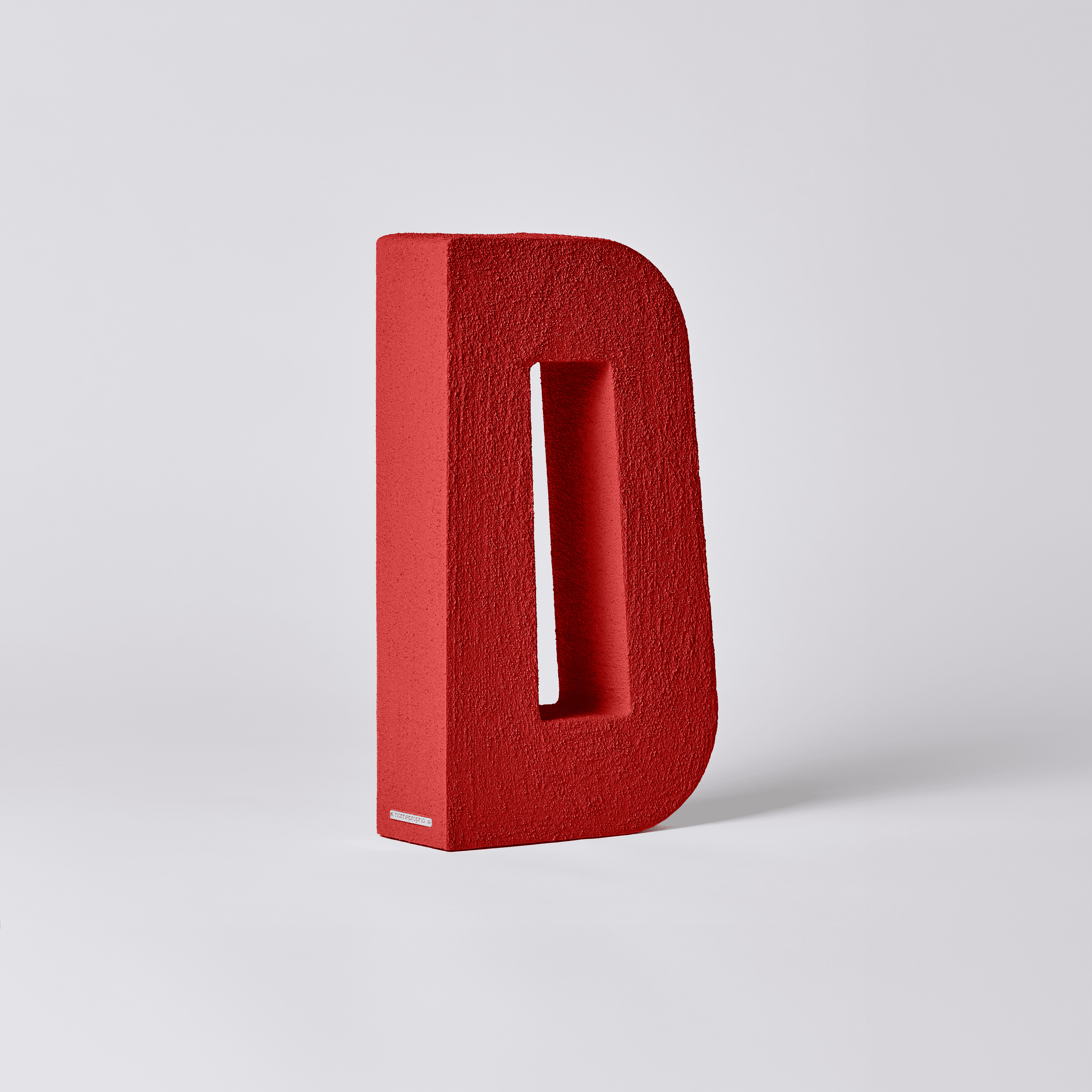 Ogni lettera è realizzata a mano, a partire da un’anima in legno lavorata artigianalmente, e rifinita con due strati di malta colorata, per un risultato materico, solido e dal forte impatto visivo.