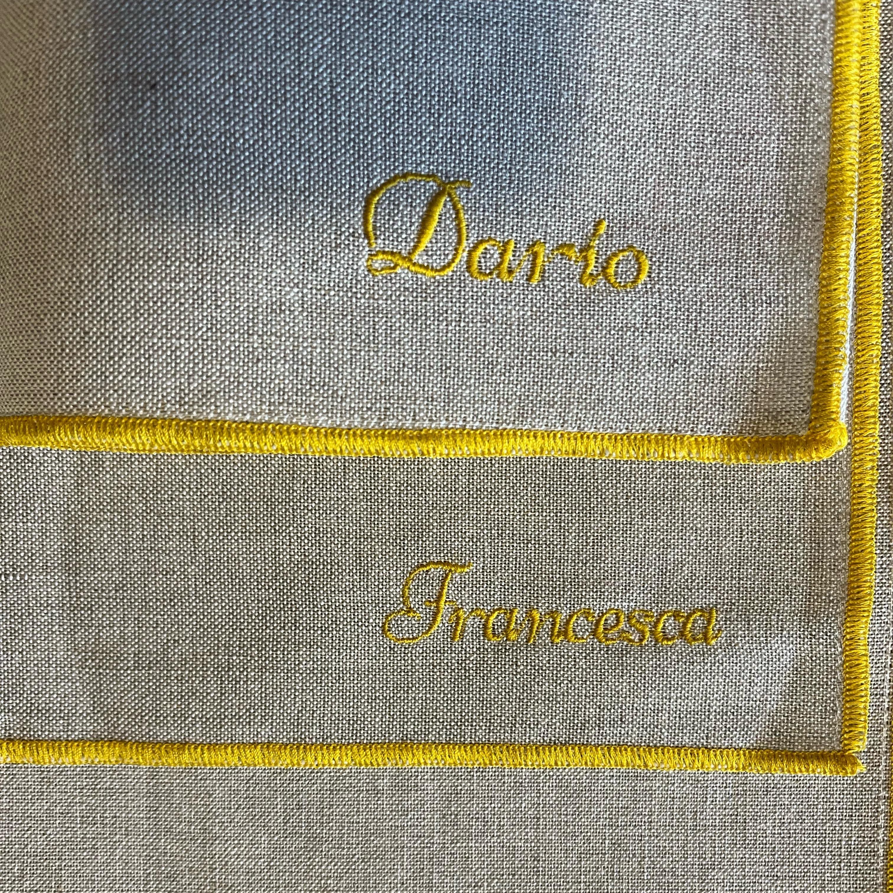 Ogni articolo viene tagliato, cucito e confezionato a mano, garantendo un prodotto unico e di altissima qualità. Che tu stia preparando una tavola elegante per un’occasione speciale o desideri un set quotidiano che parli di te, i nostri lini personalizzati sono la scelta perfetta.